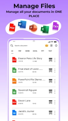 Lisäksi **Kaikki doc-lukijasovellukset** tarjoaa kattavan valikoiman ominaisuuksia tiedostojesi yksityiskohtaiseen hallintaan. Tarkastele ja lue vaivattomasti Word-asiakirjoja, selaa PDF-tiedostoja, tarkista PowerPoint-esitykset ja käsittele Excel-laskentataulukoita. Voit seurata äskettäin avattuja tiedostoja historianäkymän kautta ja jakaa asiakirjoja helposti muiden kanssa. Sovellus tukee jopa 11 eri kieltä, ja tiedostojesi suodattaminen nimen, koon tai päivämäärän mukaan on mutkatonta. Tämän dokumentinlukijan avulla voit avata tiedostosi missä ja milloin tahansa, ilman rajoituksia.