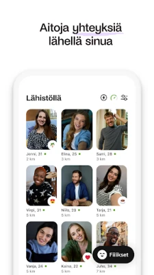 Badoo tekee uusien ihmisten löytämisestä vaivatonta ja viihdyttävää. Unohda monimutkaiset profiilit ja turha säätö; alustamme on suunniteltu käyttäjäystävälliseksi ja iloiseksi kokemukseksi, joka on täysin maksuton. Tehokkaan käyttäjäseulontamme ansiosta voit keskittyä aitoihin keskusteluihin ja jättää huolet spämmääjistä menneisyyteen. Emme rajoitu vain perinteiseen pyyhkäisytoimintoon, vaan tarjoamme monipuolisen valikoiman ominaisuuksia, jotka maksimoivat mahdollisuutesi löytää kiinnostavia ihmisiä. Laaja käyttäjäkuntamme yhdistettynä innovatiivisiin työkaluihimme tarkoittaa sinulle ennennäkemätöntä valinnanvaraa ja uusia ulottuvuuksia sosiaaliseen elämääsi.