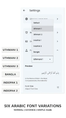 Koe moderni ja käyttäjäystävällinen ulkoasu, joka sisältää kätevästi äänitettävät resitaatiot, translitteroinnin sekä käännökset seitsemälle yleisimmälle kielelle. Tarkkuuden ja syvemmän ymmärryksen varmistamiseksi sovellus tarjoaa myös Hadith-viitteitä ja hyödyllisiä suosituksia. Valittavanasi on kuusi kaunista arabialaista kirjasintyyppiä, mukaan lukien perinteinen Nurani-fontti, ja voit halutessasi näyttää sisällön pelkästään arabiaksi. Päivittäiset Adhkar-muistutukset auttavat pitämään rukoushetket osana kiireistä arkea.