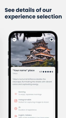 Unelmien kokemuksen järjestäminen Inside Out Japanin kautta ei ole koskaan ollut näin vaivatonta. Käyttäjäystävällinen käyttöliittymä antaa sinun selata, valita ja varata mieluisia kävelykierroksia tai hyödyntää 24 tunnin chat-palvelua saumattomasti. Maksa turvallisesti luottokortilla ja vastaanota välittömät vahvistukset, mikä tekee suunnittelusta huolettoman. Inside Out Japan varmistaa, että voit keskittyä täysin matkasi nauttimiseen, tietäen, että kaikki yksityiskohdat on huolellisesti järjestetty. Räätälöi matkasi kiinnostuksen kohteidesi mukaan ja luo unohtumattomia muistoja.