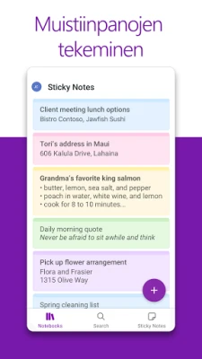 Microsoft OneNote: Save Notes on digitaalinen muistikirja ajatusten tallentamiseen ja järjestämiseen. Luo muistiinpanoja kirjoittamalla, piirtämällä, skannaamalla tai leikkaamalla verkosta. Järjestele sisältöä osioilla, sivuilla ja tunnisteilla. Pidä kaikki tärkeä yhdessä paikassa koulua, työtä tai kotia varten.