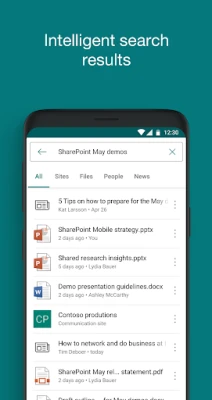 SharePointin tekoälypohjainen mobiilisovellus auttaa sinua keskittymään ja olemaan tuottelias missä tahansa. Tekoäly oppii työtapasi ja työtovereiden työt, tarjoten tarvitsemasi asiantuntemuksen, sisällön ja resurssit juuri silloin kun niitä tarvitset.